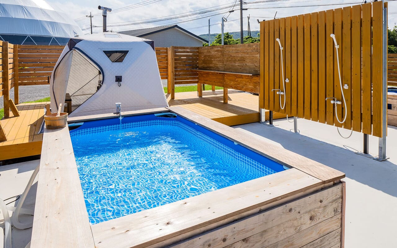 セルフロウリュも楽しめる本格派テントサウナで身体を芯から温め、冷却器装置付きで常に一定温度を保つ水風呂で体を冷やし、外気浴で心と身体をリフレッシュ。